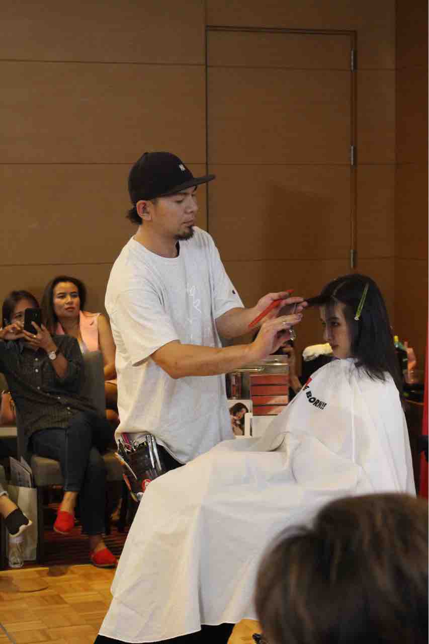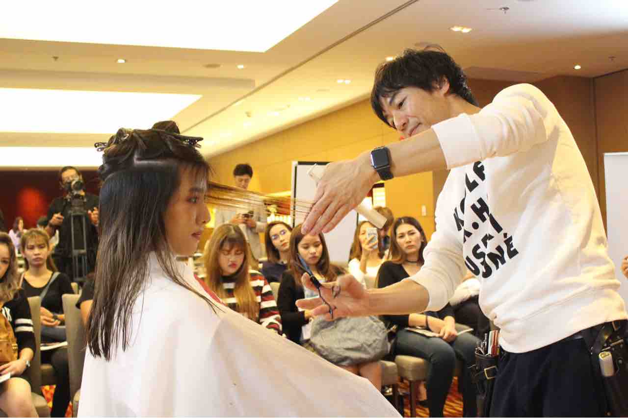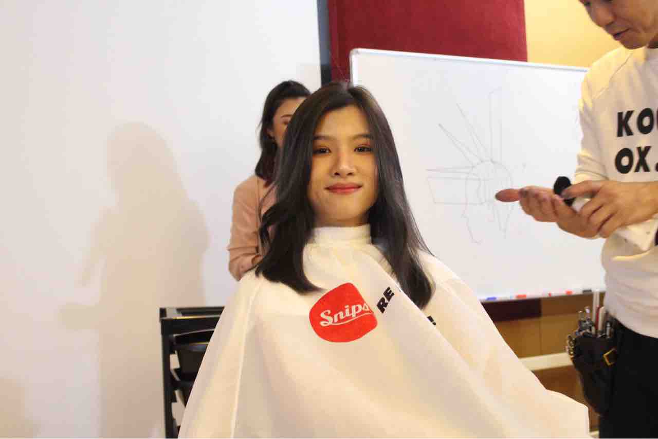 ここから、さらに顔まわりのみカットを追加してアレンジヘアに。