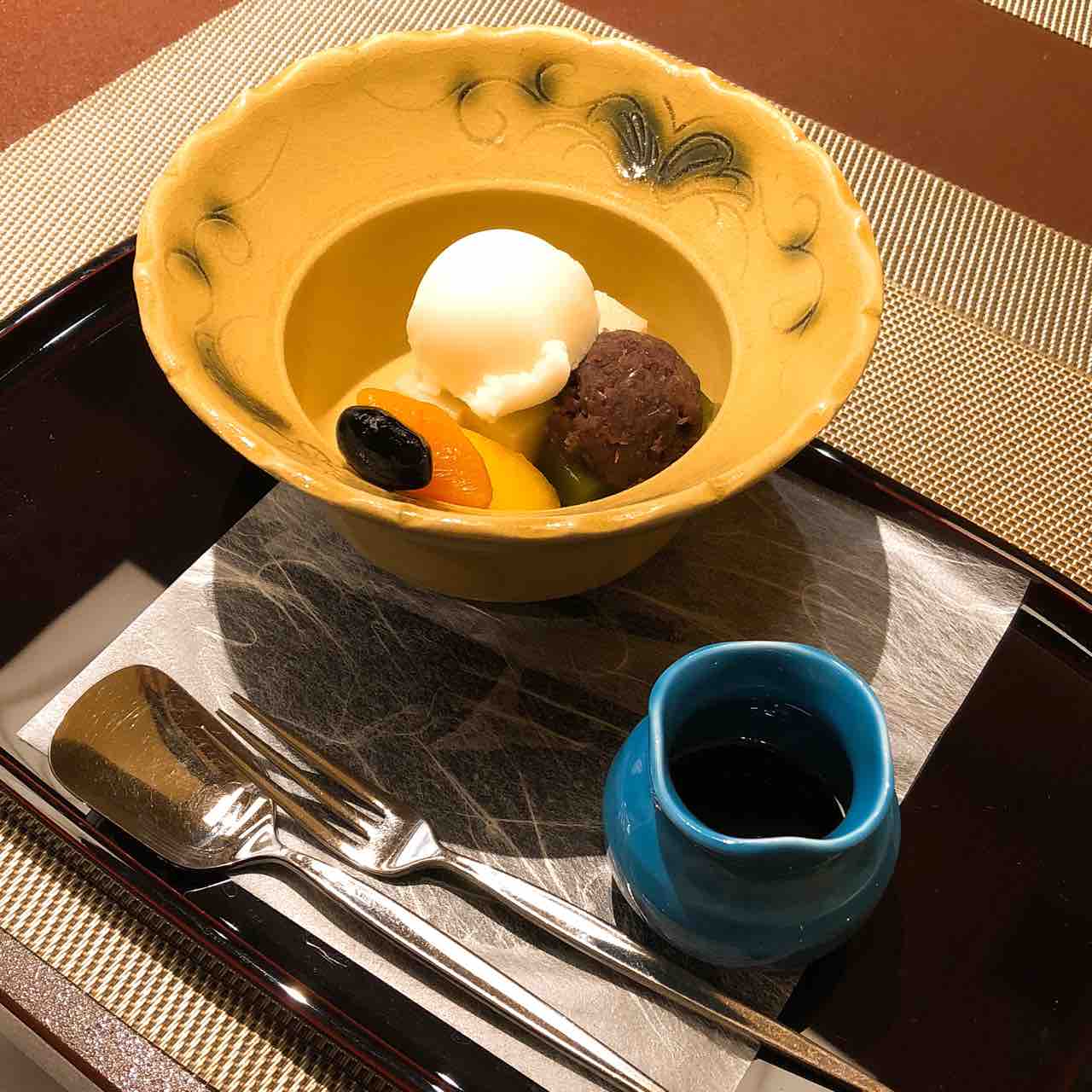 黒蜜が抹茶風味で美味しく、大満足の締めでした。