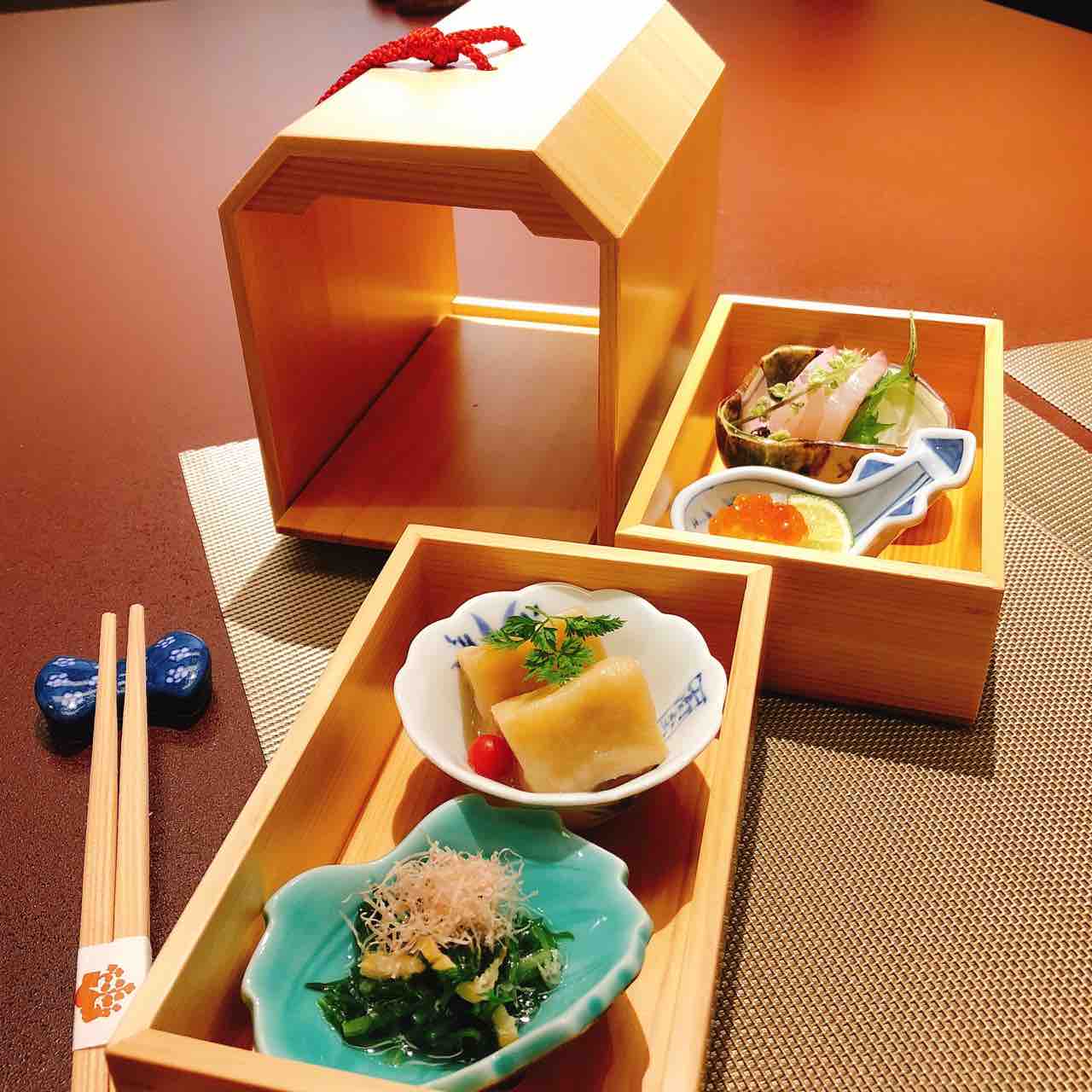 まず、こんな贅沢なお重に入ったお通しから。