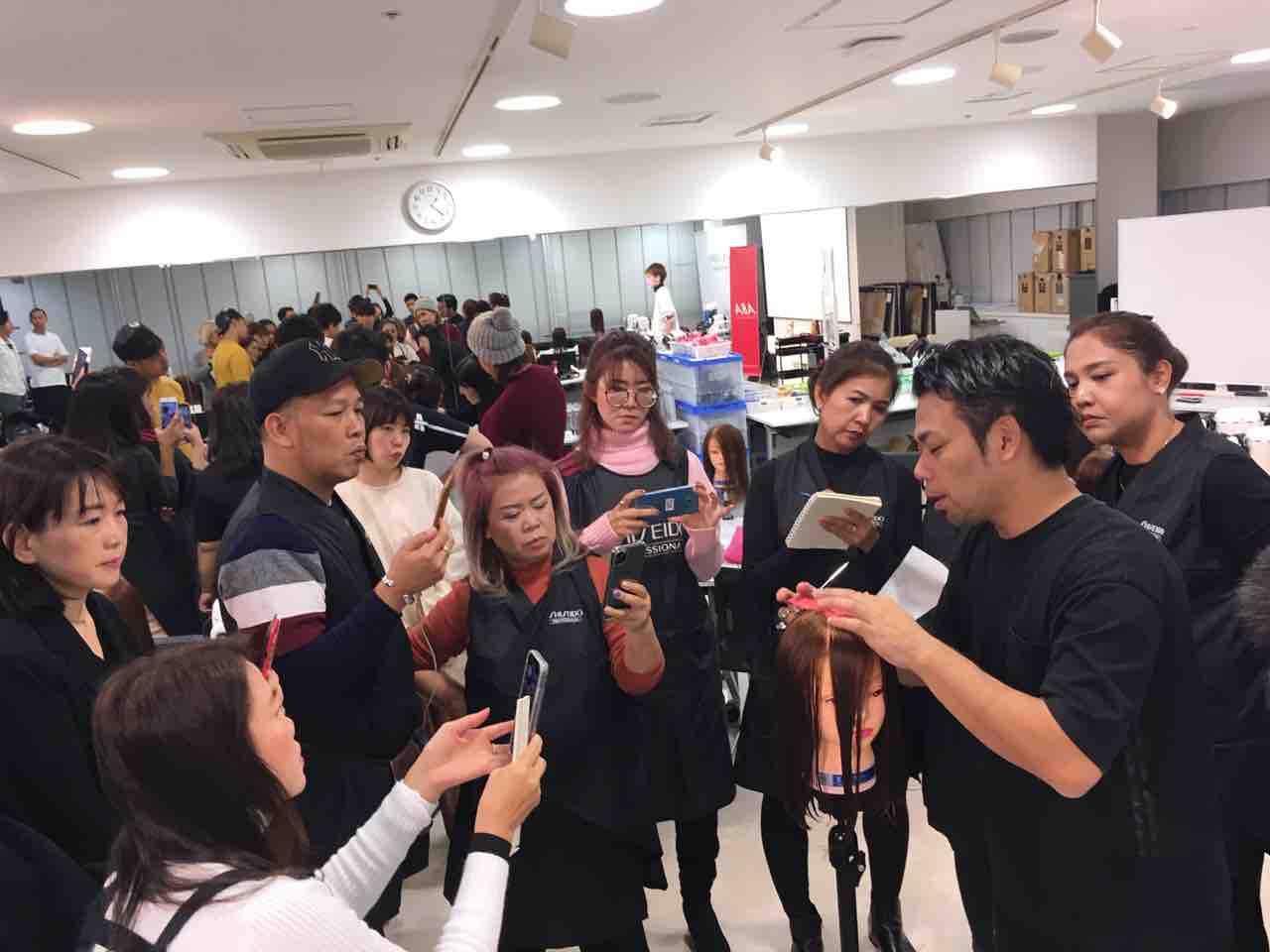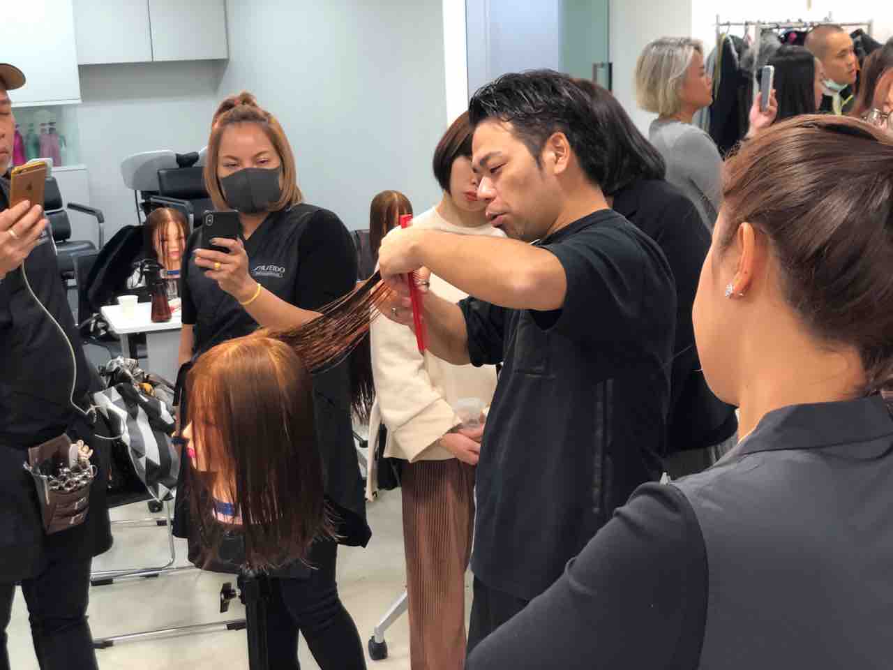 タイの美容師さん来日セミナー その2 December 08, 2019 セミナー Author satorutsuchiya 土屋サトルです。新橋のSHISEIDO Professionalさんにて行われたタイの美容師さん来日セミナー、午後の部の模様をお伝えします。午後の部はウィッグを使用して、カット&パーマの実習。皆さん、真剣に学んでくださいました。楽しんでくださって、嬉しいです♪アシスタントの千葉くんも、しっかりレクチャー。で、最後にみんなで記念撮影📷とても充実したセミナーになりました😄ご参加くださった皆さん、主宰してくださったSHISEIDO Professionalさん、ありがとうございました☆ Tag
