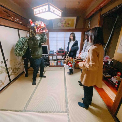 1月2日になると、小諸市八幡地区の全家に子供獅子舞が来てくれます。