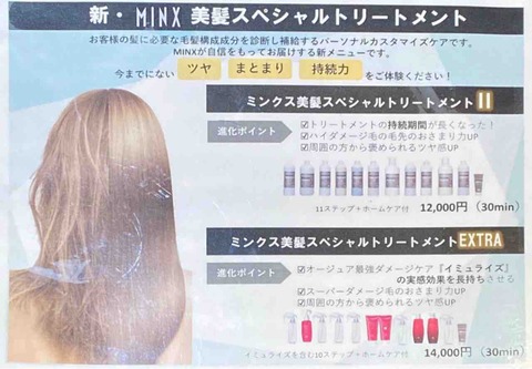 そんなMINX美髪スペシャルトリートメントに、「2」と「エクストラ」という新しいメニューが登場!