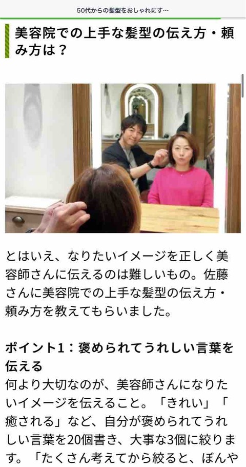 ヘアライターとして有名な「佐藤友美」さんにアドバイスを頂きつつ、美容院でヘアスタイルを相談する際に伝えるべきキーワードについての特集です。